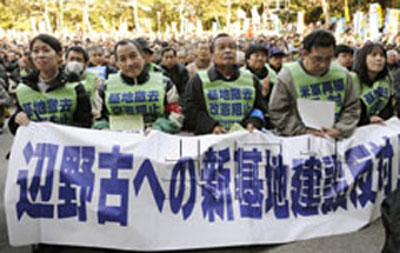 中新網(wǎng)1月31日電 據(jù)日本共同社報(bào)道,圍繞沖繩美軍普天間機(jī)場(chǎng)搬遷問題,包括100多名沖繩市民在內(nèi)的約6000人30日在東京集會(huì),要求關(guān)閉機(jī)場(chǎng)并反對(duì)建設(shè)新基地。集會(huì)由市民團(tuán)體“和平論壇”等主辦。