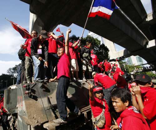 泰國最高法院最近裁定充公他信逾半資產(chǎn),惹來他信的支持者強烈反對。反獨裁民主聯(lián)盟(UDD,俗稱“紅衫軍”)計劃動員百萬民眾,星期五開始在曼谷周邊地區(qū)集合,之后再在曼谷市內(nèi)多處,包括皇家田廣場和國會大樓前,舉行百萬人反政府集會和示威。紅衫軍領(lǐng)袖聲言集會會以和平方式進行,目標(biāo)是三日內(nèi)迫使總理阿披實解散國會,重新大選。他們更表示,剛頒布的國內(nèi)安全法不會阻止他們的活動。