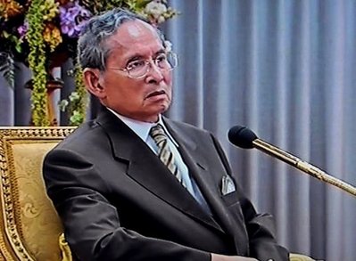 據(jù)報道,現(xiàn)年82歲的泰王在醫(yī)院療養(yǎng)已有7個月,許多泰國人民都視他為和平解決這場危機的希望。泰王昨日在醫(yī)院向新委任的法官發(fā)表電視講話。他說:“你們要公正地盡本份。在這個國家可能有些人已經(jīng)忘了自己的職責(zé)。你們應(yīng)該做好榜樣……公正地工作有助于國家前進(jìn),作為國民、公仆和其它人的榜樣,有助國家和平及滿足!彼终f:“處事公正并不容易,那里有很多誘惑。”報道分析稱,泰王的講話當(dāng)中沒有談及當(dāng)前的政治危機,讓人們猜測他所言是否有“弦外之音”。