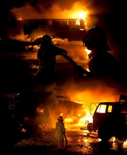 武裝分子先使用槍支及手榴彈等武器,對(duì)車隊(duì)開(kāi)火,打死7人,造成另外7人受傷。隨后,武裝分子縱火燒毀車輛,一共有10多輛車被付之一炬。目擊者稱,大約有20個(gè)集裝箱起火燃燒。由于輪胎燃燒,油罐起火,現(xiàn)場(chǎng)發(fā)生一系列爆炸。