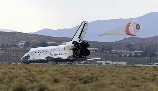 中新社洛杉磯九月十一日電(記者 張煒)太平洋時間十一日下午五時五十三分,經(jīng)過十四天太空遨游的美國“發(fā)現(xiàn)號”航天飛機成功降落在位于洛杉磯市以北約一百公里的愛德華茲空軍基地。七名航天員和迪斯尼卡通明星“巴斯光年”一同返回地球。