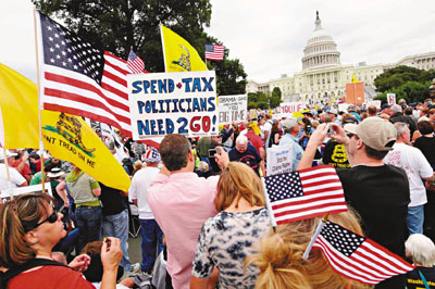 這次抗議活動由一些保守派政治團(tuán)體發(fā)起,主要包括“茶黨”及由前國會議員阿米領(lǐng)導(dǎo)的華盛頓“自由工作”組織,先后在全國34個(gè)城市舉行集會。