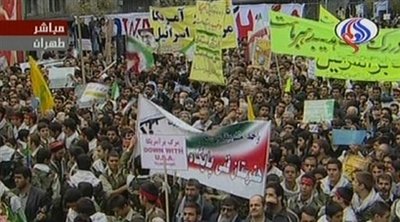示威人群包圍了原美國大使館舊址,高呼“打倒美國!”、“以色列去死!”等口號。示威人群還把寫著“山姆大叔”標志的海報撕毀,并高喊“我們血管中流淌的鮮血,是我們奉獻給偉大領袖的禮物!