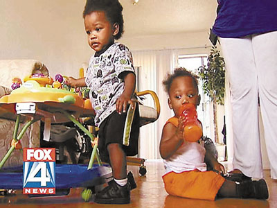 中新網(wǎng)5月19日電 美國得克薩斯州達拉斯一名20歲女子,于11個月前誕下一對雙胞胎,兩名男嬰出生時間僅相差7分鐘。離奇的是,這對雙胞胎竟然“同母異父”。原來,該名女子懷孕時背夫偷漢,兩粒不同卵子在短時間內(nèi)分別受精,出現(xiàn)不同生父的雙胞胎情況罕見,機率僅百萬分之一。