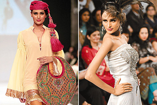 模特兒穿上當(dāng)?shù)卦O(shè)計師力作逐一亮相,當(dāng)中包括巴基斯坦傳統(tǒng)特色衣裙,配以閃耀的衣飾;又或戴上罩袍式頭罩,同時展露雙肩及臂上的紋身圖案;男的穿上鑲滿珠片的上衣配以短褲。模特兒袒胸露臂、展露美腿,有設(shè)計師甚至加入巴國混亂局勢為時裝設(shè)計的元素。
