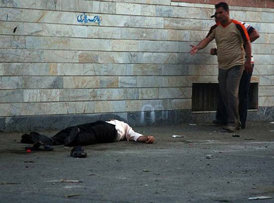 據(jù)英國《泰晤士報(bào)》、《每日郵報(bào)》、美國《時代》雜志6月18日報(bào)道,伊朗大選后的騷亂已經(jīng)進(jìn)入第5天,大約有50萬抗議者涌上街頭,抗議大選結(jié)果。遠(yuǎn)在韓國參加世界杯資格賽的伊朗國家隊(duì)球員也在比賽中戴上綠色腕帶力挺穆薩維。但令人感到恐怖的是,根據(jù)微博客Twitter上發(fā)布的照片,德黑蘭街頭近日出現(xiàn)被打死的抗議者的尸首。