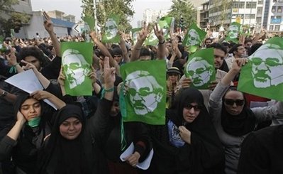 18日,幾萬(wàn)名佩戴綠色標(biāo)志物的穆薩維支持者,高呼口號(hào)向德黑蘭一個(gè)主要廣場(chǎng)出發(fā),參加一年一度的“圣城(耶路撒冷)日”集會(huì)!笆コ(耶路撒冷)日”是伊朗每年舉行的反對(duì)以色列、支持巴勒斯坦的大會(huì)。伊朗總統(tǒng)內(nèi)賈德將在此次大會(huì)上發(fā)表演講。