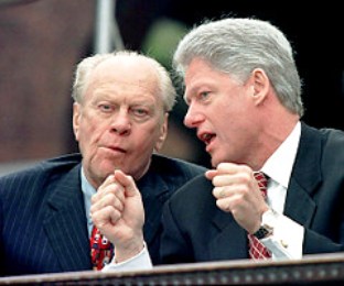 福特夫婦1993年首次與克林頓夫婦見面,他們當(dāng)時邀請新的第一家庭至他們科羅拉多的家中作客。福特對克林頓的印象好壞參半,他認為克林頓很有個人魅力、說話準確、善于推銷,是他所見過的最好的政治家,甚至要比肯尼迪總統(tǒng)都強,但他認為克林頓在外交政策方面很弱。福特還感到克林頓沒有吸取他個人生活的錯誤,有關(guān)他風(fēng)流行為的傳聞在他進行總統(tǒng)競選活動時一直困擾著他。福特稱,他得出這樣的結(jié)論是出于他對克林頓夫婦的觀察,他曾邀請克林頓夫婦在科羅拉多度周末。他后來說:“我可以告訴你一件事:他不放過社交場合的任何一位漂亮女士。我可以告訴你,他一直色迷迷的。貝蒂有著同樣的印象,他毫不掩飾自己的興趣!