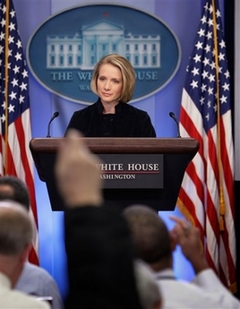 佩里諾與記者的問(wèn)答發(fā)生在10月26日的白宮新聞簡(jiǎn)報(bào)會(huì)上,記者問(wèn)她:“俄羅斯總統(tǒng)普京說(shuō),美國(guó)在東歐建立導(dǎo)彈防御網(wǎng)就好像蘇聯(lián)在古巴部署導(dǎo)彈一樣,會(huì)成為另一個(gè)古巴導(dǎo)彈危機(jī),你做何評(píng)論?”佩里諾回答:“我想拿那段歷史作比較不見得完全正確。”