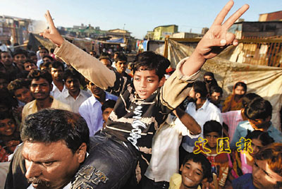 中新網(wǎng)3月1日電 據(jù)香港《文匯報》1日報道,在奧斯卡橫掃8獎大獎的《貧民窟的百萬富翁》中飾演男主角童年的印度童星愛資哈爾丁,由洛杉磯返回孟買時受到英雄式歡迎,他父親伊斯梅爾更將他捧起,把他像獎座般展示,但周四愛資哈爾丁拒絕應(yīng)父親要求到屋外“做騷”,父親當(dāng)眾對他又踢又摑,令鄰居和途人大為震驚。