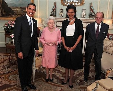 中新網(wǎng)4月2日電 美聯(lián)社消息,在倫敦參加20國集團峰會(G20)的美國總統(tǒng)奧巴馬夫婦當(dāng)?shù)貢r間1日與英國女王伊麗莎白二世及王夫菲利浦親王舉行會晤。