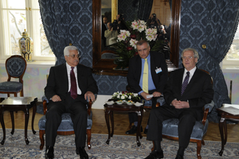 匈牙利總統(tǒng)紹約姆與阿巴斯舉行會談