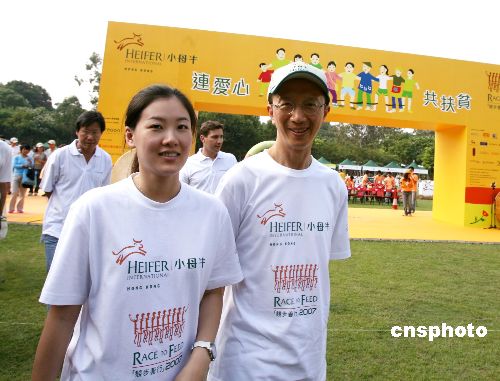 二十七日,小母牛組織香港分會主席梁錦松、小母牛組織愛心大使伏明霞夫婦參加維園舉行的小母牛[競步善行]社會各界同心助國內(nèi)農(nóng)民脫貧慈善賽活動,為中國慈善事業(yè)出力。小母牛是一家國際非牟利組織,通過向小型農(nóng)戶提供禽畜及飼料技術(shù)的培訓(xùn),協(xié)助多國貧困家庭自力更生。中新社發(fā) 王麗南 攝