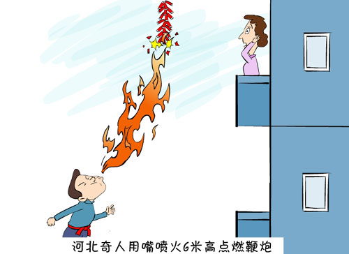 新聞浮世繪:河北奇人用嘴噴火6米高點燃鞭炮