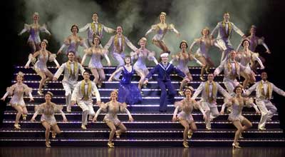 “42街”是橫貫整個百老匯的一條大街,云集著幾十家劇院和上千名音樂劇演員。在那里,每天都上演著歌舞升平、星光燦爛的奢華景象。而在音樂劇《42街》中,將百老匯42街搬上劇場,以演員在街頭舞蹈的場面呈現(xiàn)百老匯的繁華與輝煌。燈火輝煌的百老匯42街,劇院林立,演員精神飽滿。20級的霓虹階梯上,54名年輕的演員們正在跳著歡快的踢踏舞,金光閃閃的服裝令人應(yīng)接不暇。他們整齊而隨性的動作,咔咔作響的舞鞋,每一個聲音和每一個舞步都能讓人陶醉。這種純粹的、美式的、壯觀的踢踏舞群,完完全全把美國的繁華耀眼展示了出來。閃亮如星的布景、華麗炫目的服裝,盡顯的都是百老匯舞臺劇中的奢華主義。(張學(xué)軍)