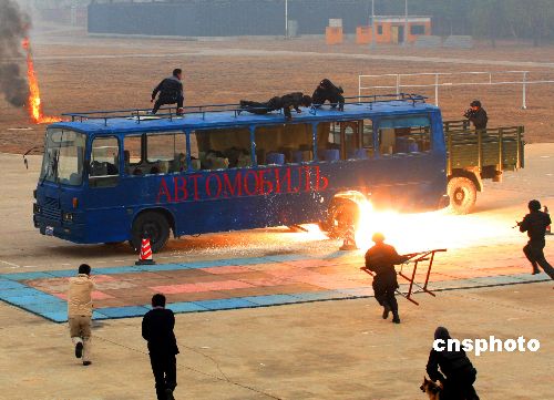 中國(guó)武警部隊(duì)特勤大隊(duì)11月12日上午在北京進(jìn)行反恐演習(xí),此次訓(xùn)練科目表演包括搏擊拳、射擊、摔擒、一招制敵、戰(zhàn)術(shù)基礎(chǔ)動(dòng)作、五人戰(zhàn)斗小組情況處置演練等項(xiàng)目。來(lái)自42個(gè)國(guó)家的59名駐華武官,參觀了武警官兵的表演,并參觀了大隊(duì)部分武器裝備。這支組建于2002年12月的部隊(duì)被命名為“雪豹突擊隊(duì)”,組建于二00二年十二月,是美國(guó)“9·11”事件后,中國(guó)為防范和打擊恐怖主義而專門組建的反恐特種部隊(duì),共四百余人,主要擔(dān)負(fù)處置重大恐怖事件中心區(qū)武力突擊任務(wù)。他們先后四次參加國(guó)家級(jí)反恐綜合演習(xí),并參加了“合作-二00七”中俄聯(lián)合反恐演習(xí),目前已初步具備了反恐制勝的作戰(zhàn)能力。