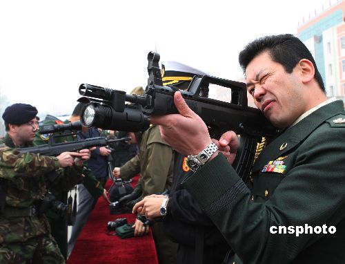 駐華武官參觀中國(guó)武警部隊(duì)武器裝備。