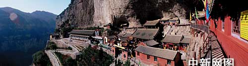 云峰寺原名抱腹寺,因建于抱腹巖而得名。始建于三國(guó)曹魏時(shí)期,距今一千七百余年。抱腹巖坐東面西,高60米,深50米,長(zhǎng)180米,分上下兩層,抱二百余間殿宇、館舍于“腹”內(nèi),容兩千年歷史文明于其間,為天下“絕無(wú)僅有”。主要景點(diǎn)有毗盧殿、玉皇閣、空王殿、五龍殿、迪公洞、鸞公洞、五龍松、鐵索嶺、《大唐汾洲抱腹寺碑》等四十余處。寺內(nèi)供奉有當(dāng)?shù)卣嫔窠橹、真佛空王佛?胀踔境菨h人第一個(gè)成佛的,塑像為包骨真身。寺內(nèi)還保存有許多唐、宋、元、明碑刻、雕塑,具有很高的文物價(jià)值。抱腹巖頂壁掛鈴,場(chǎng)面驚心動(dòng)魄,令人贊嘆叫絕。鐵索嶺是天下最古老的攀崖鐵索險(xiǎn)道。鐵索嶺的鐵索和下方云梯懸掛于唐代之前,是唐代大詩(shī)人賀知章當(dāng)年登山的一條險(xiǎn)徑。明末清初大學(xué)者傅山于崇禎十年(1637)題寫的長(zhǎng)聯(lián),清光緒三年(1877)皇帝所賜“慈云法雨”御匾,以及當(dāng)代著名學(xué)者,邑人張頷所題“抱腹棲云”的匾額,都是不可多得的珍品。巖左側(cè)現(xiàn)建有四星級(jí)的“云峰墅苑”。云峰寺已成為一個(gè)拜佛、觀光、旅游、度假的理想處所。