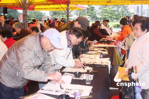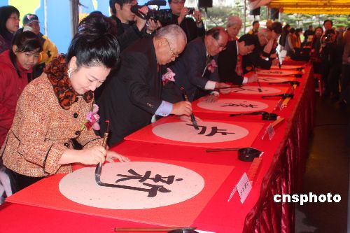 臺灣一年一度的新年開筆大會,2月3日在臺灣領(lǐng)導(dǎo)人辦公室前廣場舉行。報名參加書法揮毫者達三千多人。中新社發(fā) 耿軍 攝