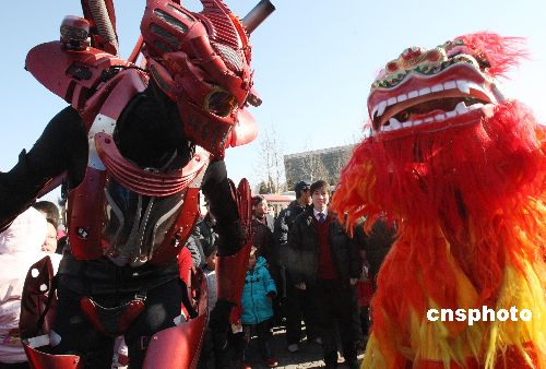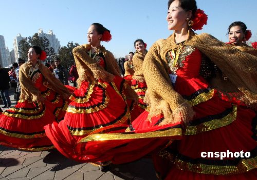 2月9日,在北京舉行的“2008北京朝陽國際風(fēng)情節(jié)”上,來自英國、斯洛文尼亞、西班牙、美國、瑞典、俄羅斯、烏拉圭等10個(gè)國家的多支表演藝術(shù)團(tuán)隊(duì)、180多位中外藝術(shù)家在多個(gè)舞臺(tái)進(jìn)行不同場次的精彩表演。中新社發(fā) 錢興強(qiáng) 攝