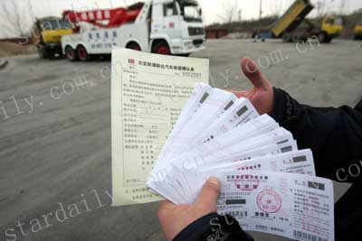 楊先生回憶說,昨天凌晨2時,他的貨車突然壞在北苑路上,被巡邏的交通隊發(fā)現(xiàn),并撥打了新通拖車公司電話。新通公司來后把掛鉤掛在楊先生的車上,并告訴他:“拖車出場費是6000元,掛上你的車就要5000元,另外每公里收費一百元。”“沒想到車還沒拖就得交11000元,我當時就不想拖了,可對方告訴我,拖車是他們的責任,而且鉤子已經(jīng)掛上了我的車,就算不拖了還是要交錢。”楊先生氣憤地說。昨天早上6點左右,新通公司將楊先生的車拖到了位于豐臺的公司,除了出場費、掛車費和36公里的里程費總共算下來一共要14600元。