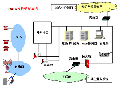 保護(hù)知識(shí)產(chǎn)權(quán)12312呼叫中心系統(tǒng)的整體結(jié)構(gòu)如下圖所示: