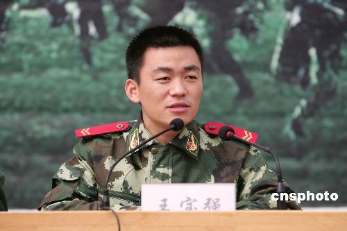 3月21日,《士兵突擊》中扮演許三多的新星王寶強(qiáng),應(yīng)邀來到武警河北總隊邢臺市支隊新訓(xùn)大隊,與新兵面對面交談,共話軍旅人生。中新社發(fā) 余洪恩 攝
