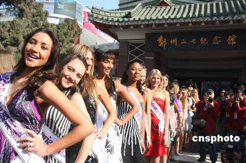 3月24日,“2008鄭州城市休閑游·國際旅游小姐走進(jìn)百年德化”啟動儀式在鄭州二七廣場舉行。來自115個國家和地區(qū)的115名2008年國際旅游小姐出席了啟動儀式。中新社發(fā) 陳代述 攝