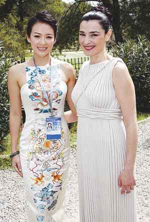 當(dāng)天,章子怡身穿富有中國特色的露背中式旗袍,于上午10點(diǎn)半進(jìn)入奧林匹亞古競(jìng)技場(chǎng)。那件刺繡旗袍上,有龍,有白云,有鶴,有很多中國的非常吉祥的象征,由著名設(shè)計(jì)師專門設(shè)計(jì),十分艷麗搶眼,甫一亮相,就得到了在場(chǎng)全體中國人的掌聲和歡呼。當(dāng)天陽光很好,她的心情也不錯(cuò),但她此行的身份卻是著名網(wǎng)站搜狐的特約記者,在現(xiàn)場(chǎng)她也當(dāng)了把追星族。隨著前國際奧委會(huì)主席薩馬蘭奇入場(chǎng)后,章子怡拿起相機(jī)對(duì)準(zhǔn)薩翁,而后兩人愉快合影。章子怡落座貴賓席5排左邊第4位。在儀式過程中,她面帶微笑,不時(shí)站起身用相機(jī)記錄。