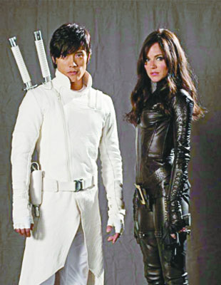 將于明年暑期檔上映的真人改編電影《特種部隊(duì)》(G.I.Joe)推出了一批角色人物作戰(zhàn)酷照,首次進(jìn)軍好萊塢、在片中扮演“忍者白幽靈”(Storm Shadow)的韓國(guó)影星李秉憲,以一身白馬王子打扮的造型出現(xiàn),跟原著比有很大出入!澳芯舴蛉恕蔽饕·米勒(The Baroness),為配合角色,除染黑并接長(zhǎng)頭發(fā)外,原本的戴眼鏡造型,亦改用墨鏡,并穿上了十幾厘米高的松糕鞋。另外,主要角色中,丹尼斯·奎特將扮演“霍克將軍”(General Hawk),而錢(qián)寧·塔圖姆飾演“公爵”(Duke)。
