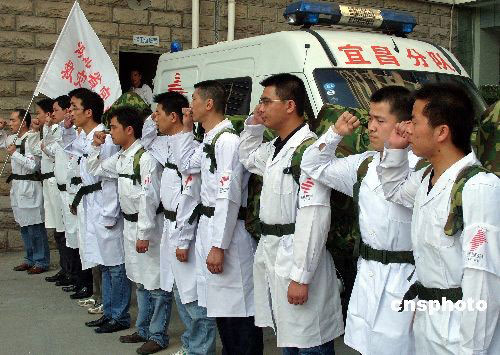 2008年5月19日,湖北宜昌市衛(wèi)生局、宜昌市疾病控制中心組建的首支衛(wèi)生防疫隊整裝宣誓,啟程奔赴四川地震災(zāi)區(qū),他們將在地震災(zāi)區(qū)從事環(huán)境衛(wèi)生消毒、疾病防控工作。