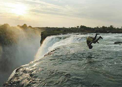 在贊比亞與津巴布韋邊界的維多利亞瀑布上,有一個令世人嘆為觀止、世界上最刺激的“魔鬼游泳池”。