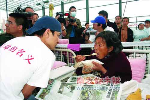 當(dāng)天,一眾藝人們到“東方汽輪”時,先默哀了一分鐘,再開始探訪工作。之后一眾藝人探訪當(dāng)?shù)蒯t(yī)院時,更一度引起騷亂,不論是病人還是醫(yī)護人員,看到劉德華等明星來訪都十分興奮,甚至有病人馬上跑下床要求簽名合照。而明星們都來者不拒,并且對年老病患者十分關(guān)懷,華仔及鄭秀文等更坐到一些婆婆床邊跟她們聊天。