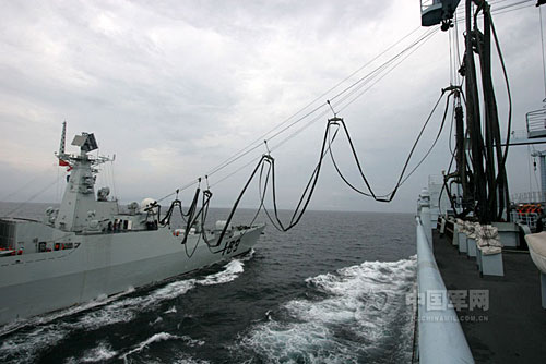 10月9日,南海艦隊某作戰(zhàn)支援艦支隊同某驅逐艦支隊數(shù)艘驅護艦,在二級海況下成功組織了高難度的“兩橫一縱”海上補給訓練。他們克服風大流急的影響,經過多次協(xié)同演練,航行中的補給對接時間比最初縮短了10多分鐘,海上應急支援能力得到提高。 中國軍網發(fā) 繞燕文攝