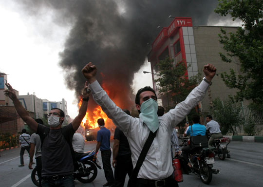據(jù)悉,在德黑蘭,有成千上萬的穆薩維的支持者上街抗議內(nèi)賈德。警方不得不動(dòng)用催淚瓦斯驅(qū)散示威者,并且放了四五次空槍。