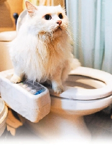 第4屆北京發(fā)明大賽參賽作品之一,可讓寵物在4至5周內(nèi)學(xué)會(huì)使用馬桶排便。發(fā)明者畢榮華制作出一個(gè)培訓(xùn)箱:在三層合一的座架上安裝帶有定位釘?shù)淖,并將一個(gè)帶有管塞和蓋板(或排架)的漏斗裝在座面上。培訓(xùn)過程中,逐漸加高座架、減少漏斗中的貓沙,加到第三層時(shí)與馬桶同高,最后將座面移到馬桶上并去掉漏斗,不再使用貓沙,這時(shí)貓咪就會(huì)習(xí)慣蹲坐在馬桶上排便。