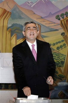 亞美尼亞中央選舉委員會20日對超過70%的選票進行統(tǒng)計后宣布,薩爾基相得票率為55.7%,大幅領(lǐng)先其他候選人。