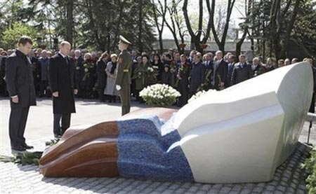 俄羅斯總統(tǒng)普京、當(dāng)選總統(tǒng)梅德韋杰夫,以及葉利欽家人當(dāng)天出席了墓碑落成儀式,并獻(xiàn)上鮮花。普京在發(fā)言中稱葉利欽是“20世紀(jì)最卓越的政治家之一,對(duì)俄羅斯乃至世界歷史進(jìn)程產(chǎn)生了重要影響”。