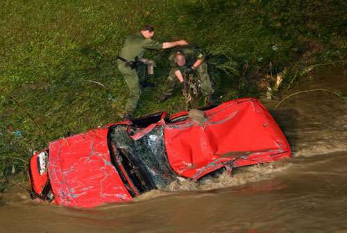 據(jù)報道,在措勒納伯縣,有多輛汽車被洪水卷走(見圖),目前車上人員生死不明。當?shù)匾殉闪⒁粋危機應(yīng)急指揮部。在容吉根地區(qū),大量房屋浸泡在水中,電力供應(yīng)中斷。在上施瓦本地區(qū),一列列車撞上了被暴風雨刮倒的樹木,火車司機生命垂危,已被緊急送往醫(yī)院救治。另有3名婦女被淹死。