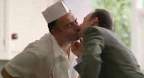 接著,那位“媽媽”喊道:“嗨,你忘了一件事。”于是兩人接了吻。