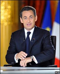 據(jù)英國廣播公司報(bào)道,薩科齊總統(tǒng)是星期一晚上在法國國家電視臺上發(fā)表的這一講話。