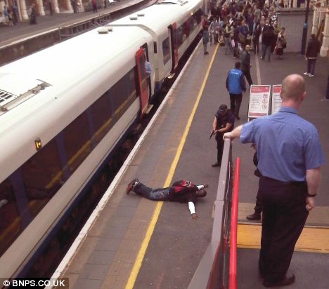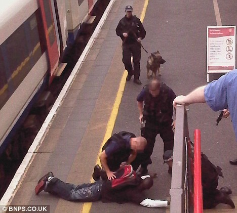 就在英國(guó)警方抓捕這名無(wú)辜男子時(shí),一名在現(xiàn)場(chǎng)的乘客使用手機(jī)拍下了有關(guān)過(guò)程。有目擊者對(duì)記者說(shuō),“當(dāng)時(shí)有很多人都在排隊(duì)買票,但突然有多名全付武裝的警察沖進(jìn)車站,他們的人數(shù)大約有10個(gè)人,有些警察拿著手槍,另外還有一條警犬。我聽(tīng)見(jiàn)有人說(shuō):不要讓任何人走下火車或者離開(kāi)站臺(tái)。隨后火車站所有的出口都被封鎖了;疖嚨能囬T打開(kāi)后,那名男子剛一走下站臺(tái),就被命令趴在地上,他被要求伸開(kāi)雙手并靠攏雙腿。警方對(duì)這名男子的背包進(jìn)行了認(rèn)真的搜查,然后又把他帶到一間廢棄不用的盥洗間,可能是對(duì)他進(jìn)行一步的搜查。這一幕真是讓人感到非?植!