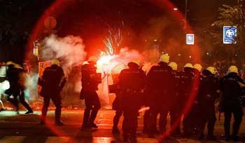 29日晚的抗議集會(huì)吸引約2萬人,這一人數(shù)比組織者所希望的少。100名據(jù)信是貝爾格萊德紅星足球俱樂部支持者隨后離開抗議集會(huì)人群,他們向防暴警察扔磚頭、炮竹,警方則用催淚彈和橡皮子彈進(jìn)行反擊。貝爾格萊德市中心很快變成一個(gè)垃圾場,街上到處都是玻璃和其它垃圾,40余人在沖突中受傷,其中包括一名西班牙攝影師。