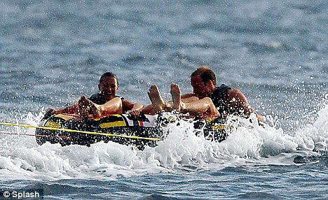 身穿黑白相間比基尼的凱特,在男友面前盡情展現(xiàn)苗條曲線,絲毫不畏懼加勒比海陽光的火辣。顯然,凱特不愿做一個花瓶,她展示了自己高超的海上沖浪技巧,惹得威廉王子拍手叫好。兩人又一同坐充氣橡皮筏,在游艇的牽引下與海水親密接觸,讓大海見證兩人的甜蜜愛情。