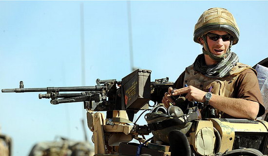 哈里王子是英國王室第三順位繼承人,今年年初曾赴阿富汗戰(zhàn)區(qū)服役,在阿富汗赫爾曼德省的第一線與塔利班戰(zhàn)斗。后來因?yàn)槊襟w泄露了這一低調(diào)派遣令,導(dǎo)致哈里王子不得不因“潛在威脅”從前線撤回。因?yàn)樵诎⒎?0周,哈里王子還被授予一枚戰(zhàn)斗勛章。
