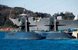 11月30日,記者乘車前往位于橫須賀的日本海上自衛(wèi)隊自衛(wèi)艦隊司令部。一進入曲徑通幽的港口營區(qū),記者即被告知,不經(jīng)過允許,嚴禁將攝像機和照相機鏡頭對準自衛(wèi)艦隊的碼頭和艦艇,以及與之毗鄰的美國海軍基地。日本自衛(wèi)艦隊的艦艇和美國海軍基地的軍艦相鄰泊靠,艦體大都涂成深灰色,依靠艦旗分出彼此。抬眼遠望,美國海軍幾艘大型艦艇引人注目,可以看到“54”“69”等舷號。有人說,“小鷹”號航母就在其中,而那艘舷號為“54”的艦艇,曾到我國青島訪問。