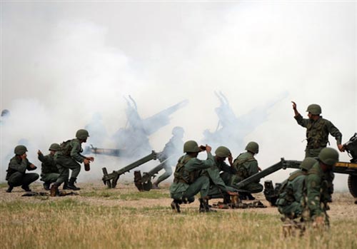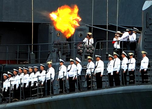 委內(nèi)瑞拉海軍部隊在陸上鳴炮還禮。