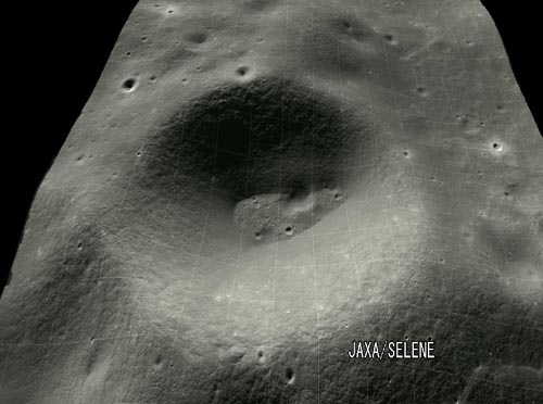 該畫像拍攝的區(qū)域?yàn)樵虑虮趁姹本?0至66度附近、寬約16公里、長(zhǎng)約180公里的范圍,從中可見直徑約為60公里的“DYSON”隕石坑,還可看見附近的稍小一隕石坑內(nèi)側(cè)存在著更多的小型隕石坑。在南極附近拍下的圖像中,也可發(fā)現(xiàn)有許多隕石坑。
