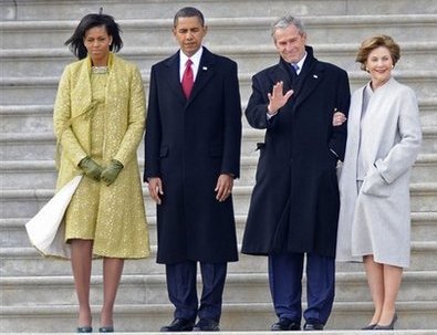 奧巴馬妻子米歇爾,被許多人當(dāng)成是美國新的時(shí)尚標(biāo)竿,當(dāng)天在夫婿的就職大典上,她穿了古巴裔美國設(shè)計(jì)師伊莎貝爾托雷多設(shè)計(jì)的一襲金黃色洋裝,外搭同材質(zhì)的合身長外套,配上一條寬面的鉆石項(xiàng)鏈。