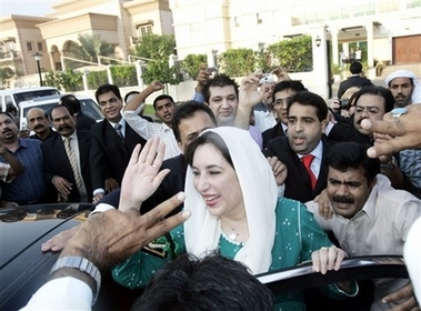 巴基斯坦總統(tǒng)穆沙拉夫希望在選舉中得到布托政黨的支持。兩人后來達(dá)成協(xié)議,當(dāng)局終止對布托貪污罪名的指控。另一方面,巴基斯坦最高法院今年8月裁決,被政變趕下臺并流亡國外的前總理謝里夫可以回國。